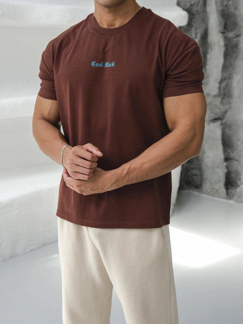Oversize Kahverengi Cool Black Baskı Kollar Dar Kesim T-Shirt